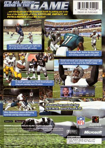 Microsoft's football series makes its Xbox debut with the release of NFL Fever 2002. In addition to 31 NFL teams and stadiums with statistics and ratings based on the 2000-2001 season, a roster of 12 fantasy teams is included. The most notable feature is the Dynasty Mode, where aspiring coaches attempt to build and maintain their chosen franchise through the highs and lows of 25 consecutive seasons -- a console first, thanks to the storage capacity of the Xbox hard drive Dynasty Mode also includes a feature called Dynamic Player Performance, which ties an athlete's overall ratings to how well players perform with him on the field. Struggle with cover star Peyton Manning at quarterback, for example, and his abilities will suffer as a result. General Manager options include signing free agents, trades, and creating new players. Veteran announcer Dick Stockton handles play-by-play duties while Ron Pitts offers color commentary. Music is performed by N.E.R.D. and Chuck D.
