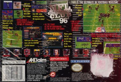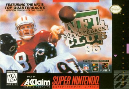 Every team from the 1996 NFL season is shown here, with real player numbers and stats. 32 offensive plays and 16 defensive plays are available as you play. Options include setting quarter lengths, from one to 15 minutes, and selecting your mode of play: Preseason, Playoffs, or a full Season, in which you play 18 games towards the goal of the Super Bowl.