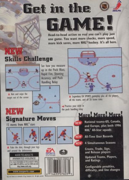Head-to-head action so real you can't play just one game. You want more checks, more speed, more kick saves, more NHL hockey. It's all here. NEW Skills Challange: See how you measure up in the Puck Blast, Rapid Fire, Shooting Accuracy, and Puck Handling Relay. Legendary EA Sports gameplay plus all the players, all the teams, and all 26 home rinks! NEW Signature Moves: 15 moves from NHL stars! Fake the shot, through your legs and around the defenseman.