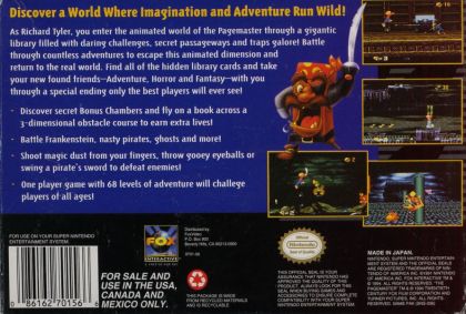 The Pagemaster was released in conjunction with the Macaulay Culkin part action/part cartoon feature film released in 1994. Guide your character through a selection of levels based around themed books, ranging from Horror to Adventure and Fantasy worlds. You can use magic and stomp enemies to death by jumping on their head. Enemies include bats, flying books, giant hands, ghosts, pirates and many more.
