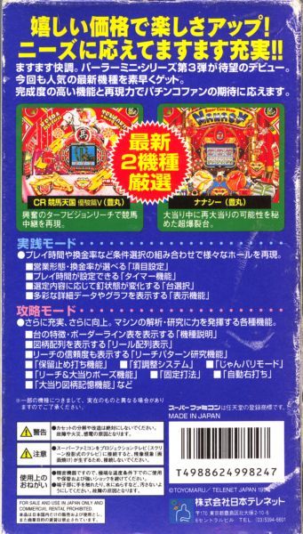 Parlor! Mini 3: Pachinko Jikki Simulation is a collection of casino style games for the Super Famicom.