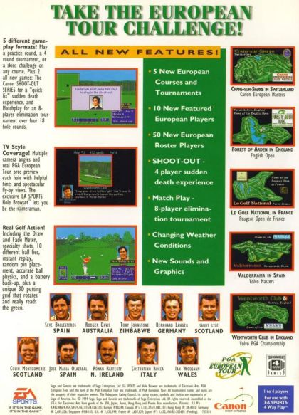 European Tour is best thought of as a remake of the original game, rather than a sequel as such. It features 5 courses from across Europe, and 60 top European pros, rather than the US-leaned lineup of the original. The graphics are much more detailed and colorful, as you'd expect considering the intervening years of advances in programming skill.