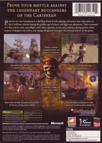 Blending role-playing elements with the strategy of ship-to-ship combat, Pirates of the Caribbean offers players a chance to set sail on the high seas as a treasure-hunting pirate. The player's career is not locked into one path, however. Players can work for a European power to lead a squadron, or forgo the pillage and plundering altogether for merchant sailing. Those with a taste for blood and vengeance can become a bounty hunter, or the true freedom of a pirate's life can be enjoyed with no strings attached. Players begin the game by creating a character with limited skills in the areas of ship control, trading, fighting, and various other traits. As players become more proficient at sailing, their attributes will gradually increase and non-player characters may join their ranks. As in titles like Pirates: The Legend of Black Kat, the action is divided into two parts: sailing and visiting islands or towns. While sailing across the sea, players are responsible for steering, raising and lowering sails, monitoring crew and prisoners, and managing cargo and armaments. Computer-controlled characters will tag along while players enter towns and travel across islands, and even join in on fights. Exploring islands may reveal smuggler's lairs or hidden treasure caves to add to one's coffers, while towns are filled with buildings such as taverns, shipyards, and churches that players can enter to purchase items or to speak with characters. Combat on the seas may involve multiple ships at once as well as sieges on fortresses, and players have the option to board enemy vessels to steal their crew and whatever goods they may be carrying. Originally known as Sea Dogs II, Pirates of the Caribbean was re-titled to promote the 2003 feature film, which in turn was inspired by the popular Disney attraction.