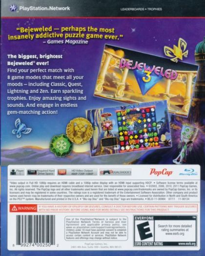 Discover all-new ways to play the world's #1 puzzle game. Find your perfect match with 8 breathtaking game modes that meet all your moods - ease into Classic Bejeweled for cascades of fun, journey through 40 challenging Quest puzzles, charge up in Lightning for nonstop action, and fine-tune your Zen experience for a revolutionary new way to relax. Enjoy the amazing sights and sounds and engage in endless gem-matching fun as you soar to dazzling new heights!
