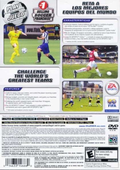 For true soccer fans who demand the finest gameplay and in-depth game modes, FIFA Soccer 2004 is the most complete and authentic soccer experience. A new Career mode gives players the chance to take a team from the lower divisions, battle through ranks, sign new players, and turn them into champions. The action is deeper than ever with advanced levels of player detail and responsiveness. With immersive atmospheres, benchmark presentation, total realism with the world's premier clubs, and industry-leading gameplay, FIFA returns as the true authority in soccer gaming.