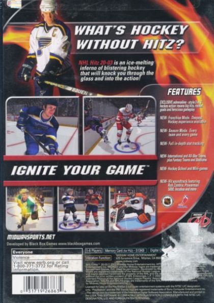 NHL Hitz 20-03 also suits up with bigger, stronger and faster players. Improved goalie logic, behavior, animations and control make it tougher to score while a visual aggression meter tips off gamers as to which players are more likely to drop the gloves.
