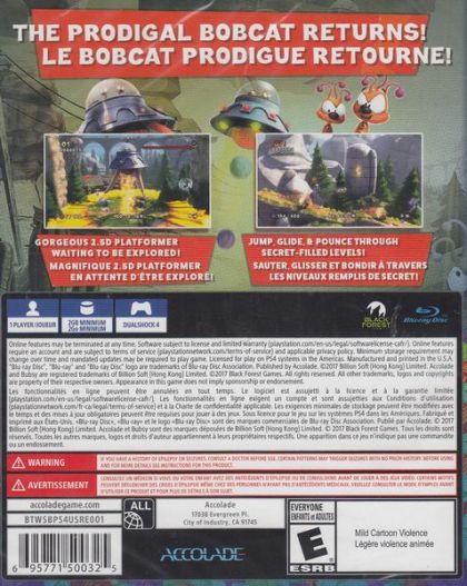 Bubsy: The Woolies Strike Back is a platform video game developed by Black Forest Games. The game was released for Microsoft Windows and PlayStation 4 on October 31, 2017. The game is the fifth entry in the Bubsy series, and the first new entry in 21 years.
