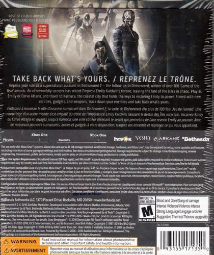 Dishonored 2 is set 15 years after the Lord Regent has been vanquished and the dreaded Rat Plague has passed into history. An otherworldly usurper has seized Empress Emily Kaldwin's throne, leaving the fate of the Isles hanging in the balance. As Emily or Corvo, travel beyond the legendary streets of Dunwall to Karnaca, the once-dazzling coastal city that holds the keys to restoring Emily to power. Armed with the Mark of the Outsider and powerful new abilities, track down your enemies and take back what's rightfully yours.
