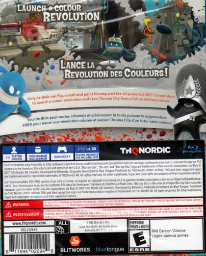 The evil I.N.K.T. Corporation has declared 'Color is a Crime!' and leeched Chroma City of all its beauty and interest. The race to rescue Chroma City has just begun, and only de Blob can save the world from a black-and-white future with his unique abilities to color the world back to life.