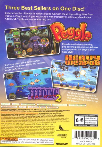 PopCap Arcade Vol. 2 is a retail package of three Xbox Live Arcade games [1]. The disc works by inserting it into the console just like any other game. However, rather than directly launching any of the titles, it adds three items to the Xbox Live Arcade menu with a small disc icon next to each name.