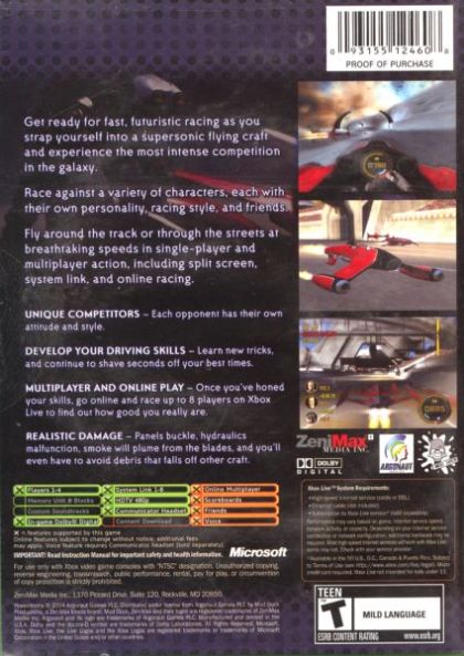 Twelve champions from the far ends of the galactic hegemony compete for an interstellar trophy by racing their Blades - jet-engined, anti-gravity aircraft. The drama-filled competition is staged at break-neck speeds around spectacular tracks. The game features 24 circuits across 8 dramatic environments, ranging from a sub-tropical Ocean Dam to a race on and under a terraformed ring-world.
