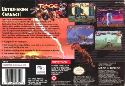 Primal Rage is a one-on-one fighting game featuring dinosaurs and giant apes as the fighters. The graphics are done with digitized stop-motion animation. Gameplay is similar to Mortal Kombat in that it is viewed from a side perspective, and features deadly finishing moves at the end of the match.