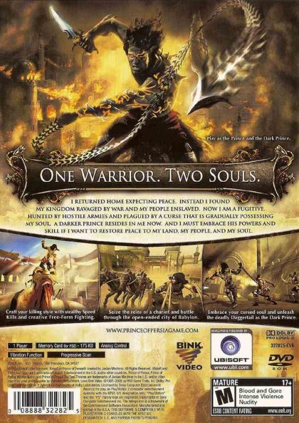 Prince of Persia: Two Thrones picks up the incredible action and adventure of the series with an all-new chapter. The Prince has returned from his adventures with his love, Kaileena. Instead of the peace that he longs for, he finds his homeland ravaged by war and the kingdom turned against him. The Prince is captured and Kaileena has no choice but to sacrifice herself and unleash the Sands of Time to save him. Now a fugitive, the Prince discovers that past battles have given rise to a deadly Dark Prince, whose spirit gradually possesses him.