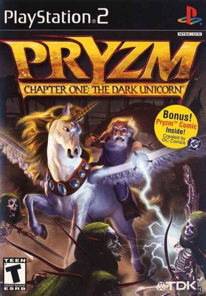 TDK Mediactive offers a classic fantasy adventure with the trappings of next-generation console power in their release of Sandbox Studios' PRYZM Chapter One: The Dark Unicorn for the PlayStation 2. Inspired by the timeless stories of fantasy writers like J.R.R. Tolkien, this adventure follows a plot of mysterious legends and heroic deeds through an epic struggle between good and evil. A dark plague looms on the horizon, a menace that threatens all the land from the peaceful Unicorn Valley to the peaks of the Troll Mountains. Two heroes form an unlikely alliance in the face of this threat. Pryzm, the mighty Unicorn, and the giant troll mage Karrack join together on a quest to rid the land of this evil that befouls it and heal its inhabitants of the damages they have suffered. At first, Przym and Karrack seem mismatched as companions. Many Trolls actually blame the Unicorns for the evil that is now befalling the good peoples of the land. After a rocky start however, the two heroes learn to work together, each relying on the other's strengths in times of trouble and each learning to respect the distinguished character and noble passions of the other as they progress through the adventure together.
