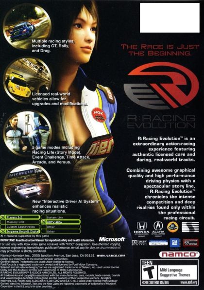R: Racing Evolution for Xbox is notable for featuring not one but eight distinct racing styles, including GT, rally, and drag racing. A total of 14 tracks are available to compete on, with both real-world venues and fantasy locales represented. Players can choose from a variety of licensed vehicles to participate in one of four game modes: Racing Life, Time Attack, Arcade, and Versus. Racing Life is the heart of R: Racing Evolution, allowing players to participate in a story line that chronicles an entire career filled with rivalries and lucrative events. By performing well in each race, players will earn points that can be used to unlock power-ups, modifications, and additional cars. The racing becomes more personal with in-game radio communications from crewmembers along the sidelines as well as from adversaries on the track.
