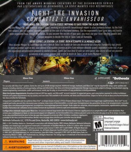 In Prey, you awaken aboard Talos I, a space station orbiting the moon in the year 2032. You are the key subject of an experiment meant to alter humanity forever – but things have gone terribly wrong. The space station has been overrun by hostile aliens and you are now being hunted. As you dig into the dark secrets of Talos I and your own past, you must survive using the tools found on the station -- your wits, weapons, and mind-bending abilities. The fate of the Talos I and everyone aboard is in your hands.