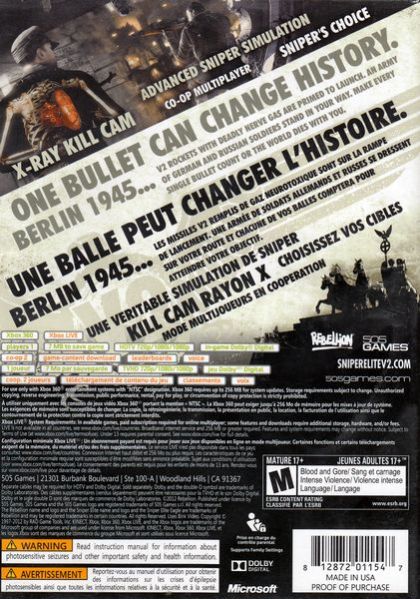 You are an Allied sniper, dropped into Berlin at the end of World War II as the Red Army tightens its grip on the city. Your mission is to assassinate five V2 rocket scientists that have been identified as wishing to defect to the Russians.