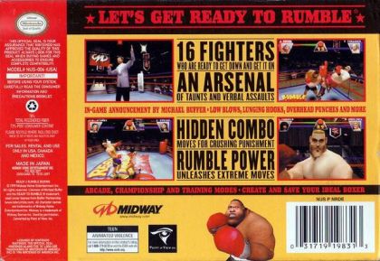 Let's Get Ready To Rumble. 16 fighters who are ready to get down and get it on. An arsenal of taunts and verbal assaults. In-game announcements by Michael Buffer. Low blows, lunging hooks, overhead punches and more. Hidden combo moves for crushing punishment. Rumble power unleashes extreme moves. Arcade, championship and training modes. Create and save your ideal boxer.