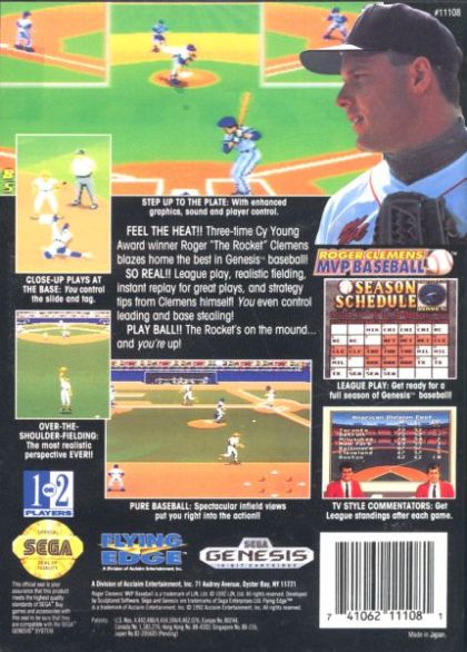 Roger Clemens' MVP Baseball was a baseball videogame released in North America during the years of 1991 and 1992 for the Nintendo NES, Nintendo Game Boy, Nintendo Super NES, and Sega Genesis. All bearing then 1991 AL Cy Young Award Winner Roger Clemens' name.