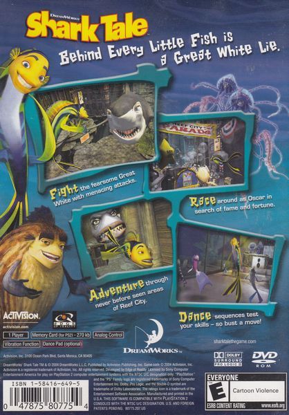 This interactive underwater adventure is based on the 2004 feature film of the same title, which tells the tale of two misfits -- a kind-hearted shark and a fast-talking fish -- who swim into trouble together when each tries to be something he is not. Players take the role of Oscar, the charming, colorful "hustler fish," who works at the local Whale Wash and spends a lot of his free time trying to live up to his own boasts. Oscar can show he's got room to talk, however, through a selection of more than 25 action-oriented missions that have him racing though the crowded city, dancing to the beats of the movie's hip-hop soundtrack, and fighting fin-to-fin against opponents who can talk trash (almost) as well as he does. When he's not proving himself in one of these events, Oscar can explore Reef City, which includes many locations featured in the film and a number of all-new environments.