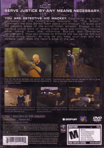 The Shield is a 3rd person action videogame capturing the look, feel and authenticity of one of the most talked about programs on television. Detective Vic Mackey and the Strike Team define a new form of policing on FX Network's Emmy and Golden Globe winning police action-drama, The Shield. Sammy Studios is working in cooperation with the show's creators and talent to ensure that the game authentically recreates the same action and visceral emotional impact as the show. Never-before-seen gameplay elements will create a true-to-life police action video game, and moments taken directly from the series will immerse players in the disturbing Farmington underworld now recognized by millions as Vic's universe. Just like the series, players in the game will delve into the grayest areas of the law, employing unconventional police tactics while fighting a war on crime where the lines are blurred on what ends can justify the means.
