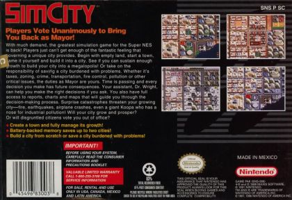 SimCity sets you as the mayor of a new municipality, with the responsibility of building and maintaining a place where citizens can move to and work and be happy. The first task is to place essentials such as housing, transport links, schools, factories and shops. There are 50 types of these, allowing for homes of all standards and different types of businesses. Make sure to consider which sites are effective for which tasks. Some power sources pollute, others don't but are more expensive. Taxes must be raised to ensure an income, and then portions allocated to public services such as policing and roads. Earthquakes, floods and fires are all emergency situations that must be dealt to contain any damage.