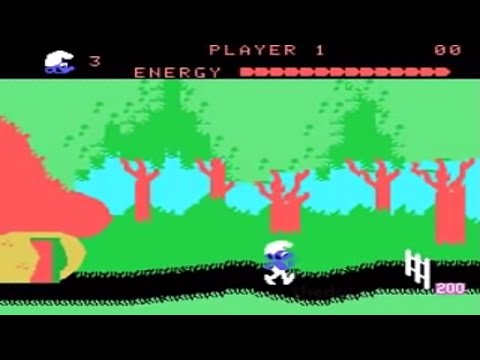 Smurfette has been kidnapped and is being held atop a platform in Gargamel's castle. Controlling your smurf across the screen, you must jump over obstacles, away from spiders and eventually up to smurfette to rescue her. Completing of this task restarts the game with faster moving obstacles and it also takes longer (more scenes) to get to Gargamel's castle.