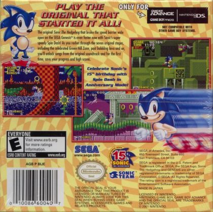 In honor of its beloved mascot's 15th birthday, SEGA brings the game that started it all to GBA Sonic The Hedgehog. The game will feature two new additions to the classic 1991 debut, including Sonic's famous Spin-Dash move and a new save ability.
