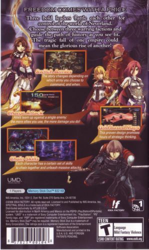 Spectral Souls is intense role-playing strategy where you must battle to unite your homeland. A vicious circle of violence has erupted, as the battle torn continent of Neverland is caught up in a great war between good and evil. Three young soldiers will rise to put an end to this madness once and for all. The player will switch between the three opposing kingdoms to play the Royal Demon Kingdom, the Imperial Army, or the Rebel Army. Depending on how you progress through the game with each of the forces, the story of the game will change.