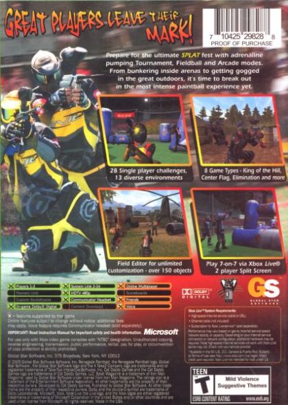 Multiplayer and single player gamers can even design and customize their levels with the expansive Field Editor game feature. This option allows the player to create the ultimate paintball field to "gog" their opponents including choosing from 13 distinct indoor and outdoor environments such as arenas, stadiums, cities, hills, Wild West, military testing ground, and more. Additionally, hundreds of themed objects like trees; bushes, forts, buildings, junked cars and even a helicopter are available to be placed wherever needed. Adjust the size and texture of placed objects to increase the variety in the paintball arena. The ability to place power-ups such as: invincibility, ricochet, rapid fire, cannonball, sniper and ghost adds to the action and increase the competition.