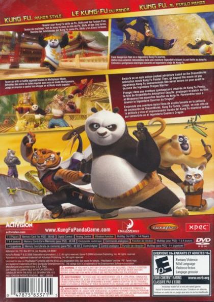 In the Kung Fu Panda video game, players embark on an epic, action-packed adventure as they master the specialized Kung Fu fighting styles of Po the Panda, the unlikely hero, his teacher Shifu, and the legendary Kung Fu masters, the Furious Five: Monkey, Tigress, Viper, Mantis and Crane. Through 13 legendary levels from the movie and beyond, and spanning land, water and air, players must work their way to become the Dragon Warrior and defeat the ultimate enemy, Tai Lung, as they battle a variety of foes, overcome dangerous obstacles, navigate multi-tiered environments and solve challenging puzzles. Featuring a deep variety of gameplay, unique co-op and competitive multiplayer modes, collectibles, and a host of character upgrades, the Kung Fu Panda video game provides an experience gamers of all ages will enjoy.