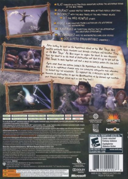 In the videogame, players assume the role of the rambunctious young Max and can explore the island of the Wild Things, journey across its dangerous terrain, overcome hazardous obstacles and battle fierce creatures. After landing his boat on the mysterious island of the Wild Things – Max quickly befriends the fearsome but loveable creatures and becomes "King of All Wild Things." He soon learns that the island is on the brink of destruction and that it's up to him and the Wild Things to work together to find a way to escape to safety before it's too late.