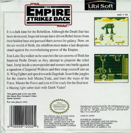Star Wars: The Empire Strikes Back is a video game released for the Nintendo Entertainment System in 1992. It is the sequel the original Star Wars for the NES. This is the second of three video games released under the Empire Strikes Back title for home video game systems. It was preceded by a version for the Atari 2600 and succeeded by Super Star Wars: The Empire Strikes Back for the SNES.