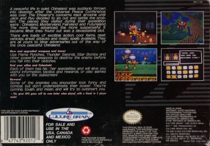 Super Ninja Boy is an action RPG for one or two players. In a two player game, each player controls either Jack or Ryu. In a one player game, only Jack appears. The number of players may be switched in-game at any time by visiting a convenience store.