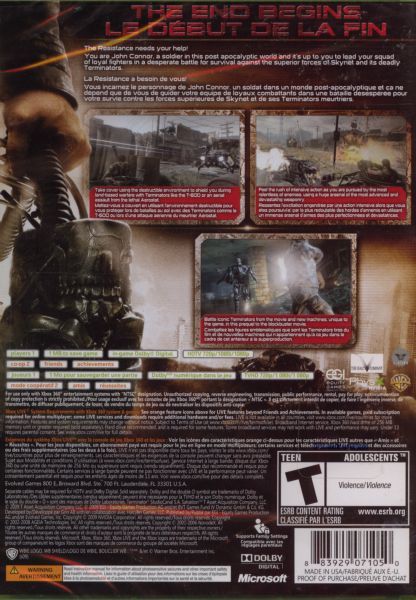 Terminator Salvation the videogame is an intense action-packed third-person shooter featuring concentrated armed combat against all of the Skynet enemies from the film and new killer machines specifically designed for the game. Taking place two years before the events of the upcoming film set in a post apocalyptic, decimated Los Angeles, players will be lead through a visceral, story and character driven gaming experience.