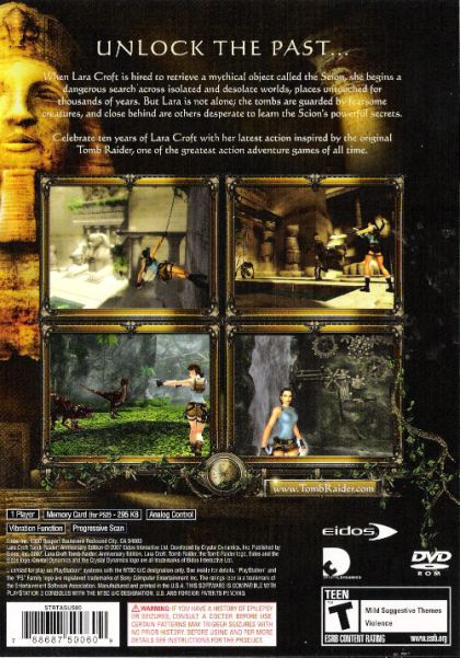 Tomb Raider: Anniversary retraces Lara Croft's original genre-defining adventure, as she pursues the legendary Scion artifact. New graphics, technology and physics bring Lara's adventure up-to-date and offers gamers a completely new game play experience. Re-imagined, Anniversary delivers a dynamic fluidly and fast Lara Croft, massive environments of stunning visuals, intense combat and game pacing, and an enhanced and clarified original story. Enter into strange, undiscovered lands and solve their deepest, darkest mysteries, open doors to new realms, uncover great rewards and unearth secrets to Lara's past.