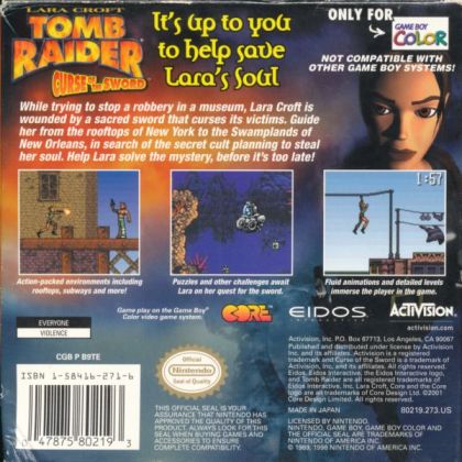 Tomb Raider: Curse of the Sword is a video game based on the Tomb Raider series, developed by Core Design. It was released for the Game Boy Color in 2001, and it is a sequel to the first Tomb Raider for the same system. The next Tomb Raider game for a handheld system was Tomb Raider: The Prophecy for the Game Boy Advance.