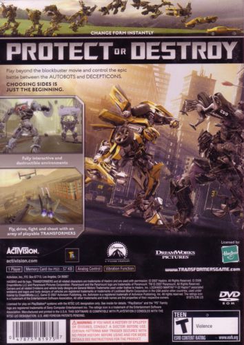 Based on TRANSFORMERS, DreamWorks Pictures and Paramount Pictures' upcoming live-action feature film due out July 4th, and produced in association with Hasbro, TRANSFORMERS: The Game lets gamers control the outcome in the battle for Earth as they choose to protect it as AUTOBOTS or destroy it as DECEPTICONS. Players will also experience the unstoppable power and massive scale of their favorite ROBOTS IN DISGUISE such as BUMBLEBEE, BARRICADE and others.