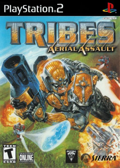 Possessing the unique distinction of being one of the first PS2 titles designed almost solely for online play, Tribes: Aerial Assault offers console gamers a unique spin on the Tribes franchise that first debuted on the PC. Serving as the foundation for mass armies of players fighting one another, the story tells of the Wilderzone -- the 40th century's wild frontier -- a place that serves as the backdrop for a conflict against war-bred soldiers known as the Bioderm. Straying from what's considered the norm in the FPS genre, Tribes: Aerial Assault places an emphasis on cooperation by pitting teams of players against one another (with a maximum of 16 participants per match) in Capture-the-Flag competition. Each player is equipped with a jetpack (in addition to a small cache of customizable weaponry) and let loose in large, open-ended locales. Each team member is given the choice of a light, medium, or heavy character, which in turn dictates the weapons and abilities that player will be capable of wielding. The Bioderm heavy trooper for example, can make use of a chain gun, fusion mortar, grenade launcher, missile launcher, plasma rifle, and spinfusor, though is incapable of utilizing the laser rifle -- only light troopers can make use of this weapon. Of course, the lighter troopers are quicker, but more susceptible to damage than are the heavily armored ones. While each team's base houses the all-important flag, it also comes equipped with inventory and vehicle stations that provide equipment and vehicles, respectively. Additionally, players will need to protect the energy generators that fuel the aforementioned stations. The four vehicles players can commandeer are the Mongoose Grav Cycle, Dingo Fighter, Piltdown Transport, and Hammer Bomber, each of which has inherent strengths and weaknesses in battle. Match types players can choose to participate in include Deathmatch, Team Deathmatch, Capture the Flag, Capture and Hold, and Hunters. Tribes: Aerial Assault supports both, narrowband and broadband users, with the latter offering optimal performance. Additionally, two players can participate in online matches utilizing a split-screen on only a single console. The single-player mode pits players against AI bots (computer-controlled opponents) in various scenarios, and serve to familiarize newcomers to the nuances of the game before going online.
