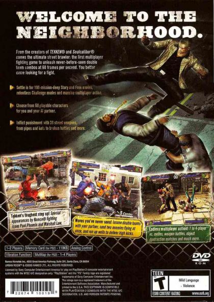 Gang life and street justice rule the inner city, turning neighborhoods into war zones. One of the City's many gangs has hired you to protect their leader, plunging you into a war that involves corruption spanning from the streets all the way to the upper levels of city government. Use what you can ? there's no such thing as a clean fight. Team up with an AI controlled character to pull off a host of destructive double team moves against multiple enemies. Are you down to control your hood?