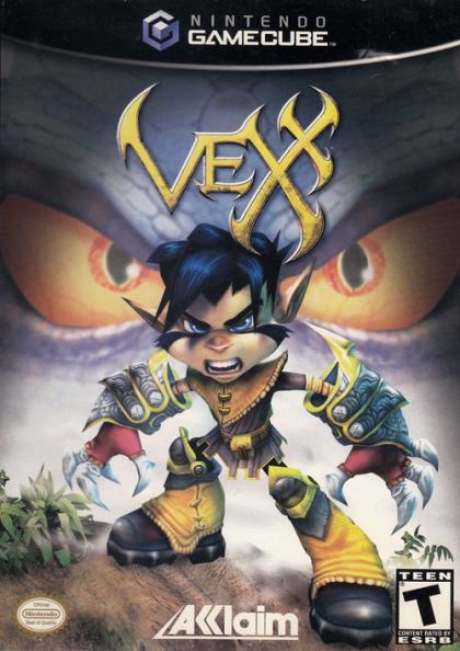 Vexx embarks on a perilous quest to free his townsfolk and obtain justice for his grandfather's vicious murder in this original 3D platform game from Acclaim. Vexx, a short, bat-like creature with spiked hair, pointed ears, and a furrowed brow, draws power from a pair of battle gauntlets forged with razor-sharp blades. The gauntlets allow him to swim at high speeds, climb walls, glide for a short time, and pound the ground to rattle enemies. As Vexx navigates the game's environments, ranging from underwater cities and dark caves to active volcanoes and desert temples, he will attack enemy creatures using timing-based combo attacks similar to those found in traditional fighting games. The moves Vexx can perform depend on his location in relation to his rival. While on the ground, the hero can slash at his enemies with both claws, perform a powerful uppercut, and make running long jumps. In the air, Vexx can slam his gauntlets into the earth or perform flare kicks to send an enemy flying. By mixing different moves together, players can juggle opponents for multiple hits. Successful combos result in enemies leaving behind health pick-ups needed to keep Vexx at optimal fighting power. Time of day also factors in the hand-to-hand fighting. As day turns into night, enemies become more aggressive and more resilient to attacks, but players can alter time to their benefit by finding sundials. Also hidden in each world are various mini-games. The planet Vexx calls home, Astara, is divided into nine themed regions filled with places to climb, jump, swim, and run. The goal in each is to obtain a specific number of "Wraith Hearts" in order to unlock new areas and to advance the story line. Hidden in a similar manner as Shines in Super Mario Sunshine or Power Cells in Jak and Daxter, each Wraith Heart can be found with the help of a cryptic clue hinting at its whereabouts. Other items Vexx can collect include Soul Jars, which will reveal one wraith heart once all are collected, and special orbs. The game engine used in Vexx was originally created for Turok: Evolution, also by Acclaim Studios Austin.