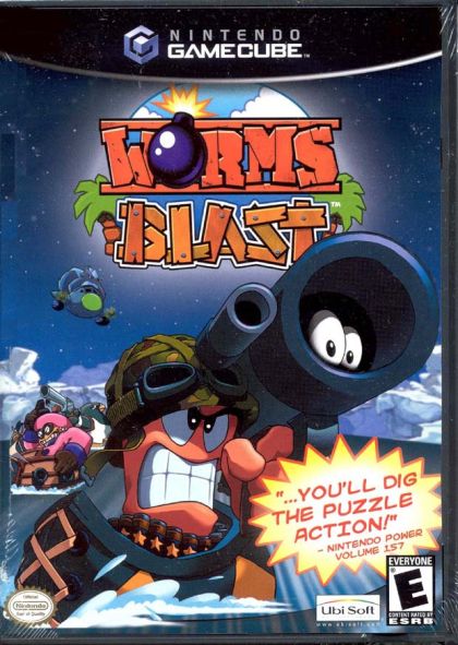 Open up a whole new can of Worms as 2D platform battle meets Tetris-like puzzle action. Worms Blast is an all-new game based on the popular series of turn-based action titles which began with 1995's PC hit Worms. This 2002 release has the player controlling a character who sits in a small boat and shoots away "cell" objects that drop down from above. A variety of wacky specials and power-ups are designed to both confound and delight. Numerous single-player and multiplayer modes are supported. Earlier Worms titles succeeded not only due to unexpectedly rich and engaging gameplay, but also because of the endearing sense of humor conveyed by the cute little invertebrate heroes. Showcasing the "Worms Universe" like never before, Worms Blast features several newly developed characters who appeared less prominently (often as weapons!) in earlier games, including Calvin the Super Sheep, Ethel the Old Woman, Stavros Skunk, and Rocky the Concrete Donkey.