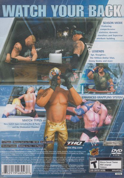 Relive the drama like never before in SmackDown! Here Comes The Pain. Create, play and develop your own Superstar through storylines developed exclusively by WWE writers. Track your progress with seasonal stats, earn money to build up Superstar abilities and unlock hidden elements. Featuring enhanced gameplay, new match types and better production values. The most electrifying brand in sports entertainment will ignite the Playstation2 this holiday season.