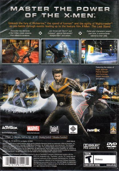 X-Men 3: The Official Movie Game provides the back-story for the upcoming X-Men: The Last Stand feature film. For the first time ever, the game enables players to truly command the powers of popular characters from the X-Men movie universe. Players will assume the roles of Wolverine, Nightcrawler, and Iceman as they wield and upgrade their signature powers and maneuver through unique environments. Hack and slash with Wolverines brute strength to decimate foes; as Nightcrawler, players will scale walls, spin and BAMF through environments to stay one step ahead of enemies; and experience incredible speed on Icemans ice slide while shooting ice beams and creating hailstorms to freeze the opposition. Features voice acting by stars of the film, like Patrick Stewart