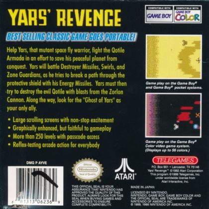 Yars' Revenge is a video game released for the Atari 2600 in 1982. It was created by Howard Scott Warshaw, who also wrote the 2600 titles Raiders of the Lost Ark and the much-derided E.T. the Extra-Terrestrial. Yars' Revenge was Atari's best selling original title for the 2600.