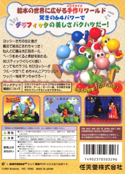 Yoshi's Story (?????????, Yosshi Sutori?) is a side-scrolling platform game, published and devoloped by Nintendo for the Nintendo 64 entertainment system. It is the sequel to the Super Nintendo game Super Mario World 2: Yoshi's Island. It was released on December 21, 1997 in Japan, March 9, 1998 in North America and April 9, 1998 in Europe. It was re-released on the Wii's Virtual Console service in North America on September 17, 2007, in PAL regions on October 26, 2007 and in Japan on October 30, 2007. The game was developed by the Yoshi's Island team, directed by Hideki Konno, and produced by Takashi Tezuka. It was one of the first EAD-developed titles that was not produced by Shigeru Miyamoto, and one of a very few Mario series games that does not feature Mario. Critical reception to Yoshi's Story was mixed; it received criticism and praise for its controls, levels, music, and childlike atmosphere, and it was commonly criticized for being too much a departure from its predecessor.