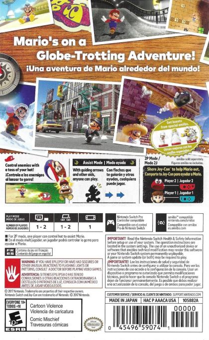 Join Mario on a massive, globe-trotting 3D adventure and use his incredible new abilities to collect Moons so you can power up your airship, the Odyssey, and rescue Princess Peach from Bowser's wedding plans!