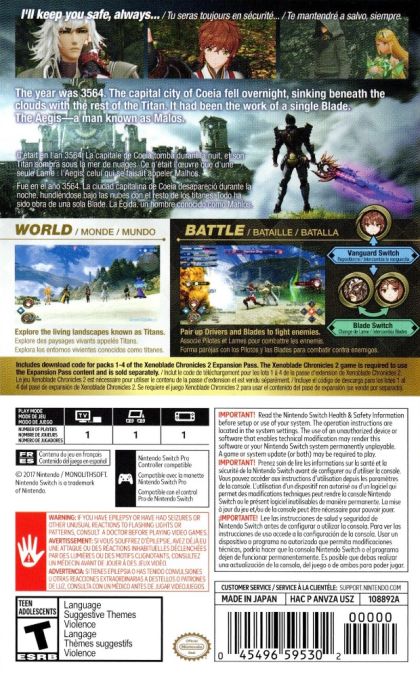 Guide a group of legendary warriors on a journey through the tragic history that doomed a kingdom and drove a hero down a dark path 500 years before the events of the Xenoblade Chronicles 2 game. Defend yourself from Malos and his forces using all the fury of this refined battle system, allowing you to fight as both the artificial lifeforms known as Blades and their masters, the Drivers.