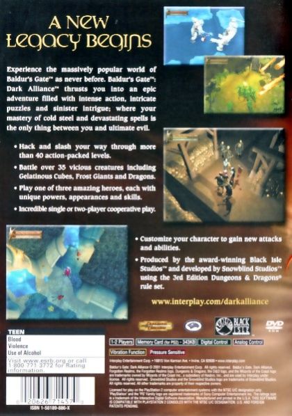 Baldur's Gate: Dark Alliance is a revolutionary game that combines fast-paced action and adventure in the popular world of Baldur's Gate. With an epic tale of intrigue, fierce alliances, explosive spell effects and highly detailed creatures and environments, Baldur's Gate: Dark Alliance is a benchmark of technology and gameplay.