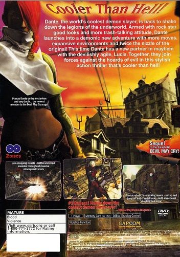 Twice the game as the original -- Devil May Cry 2's level design far exceeds the original. Much of the game's environment is outdoors and will include a Gotham-like cityscape and an old European town. More environments will be announced as the release date approaches!